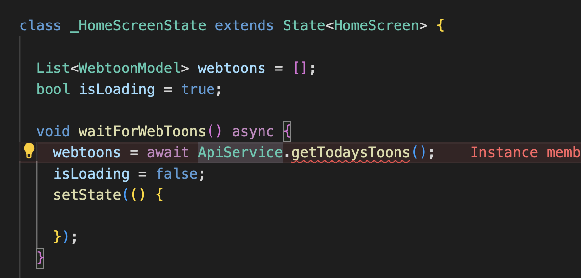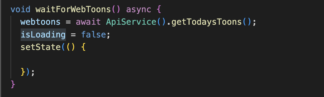 즉, 위 상황에서 ApiService의 멤버 함수인 getTodayToons는